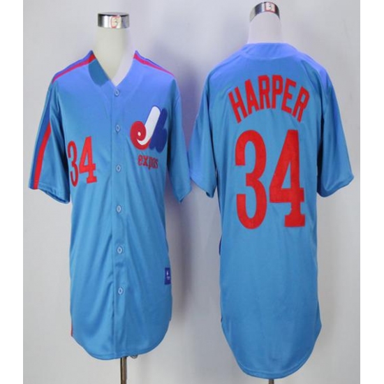 >Mitchell And Ness Montreal Expos #34 Bryce Harper Blue Throwback Stitched MLB Jersey