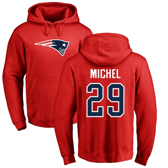 NFL Nike New England Patriots #29 Sony Michel Red Name & Number Logo Pullover Hoodie