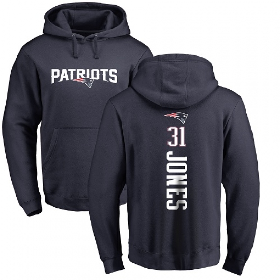 NFL Nike New England Patriots #31 Jonathan Jones Navy Blue Backer Pullover Hoodie
