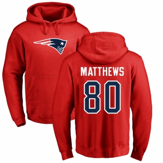 NFL Nike New England Patriots #80 Jordan Matthews Red Name & Number Logo Pullover Hoodie