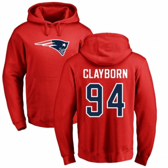 >NFL Nike New England Patriots #94 Adrian Clayborn Red Name & Number Logo Pullover Hoodie