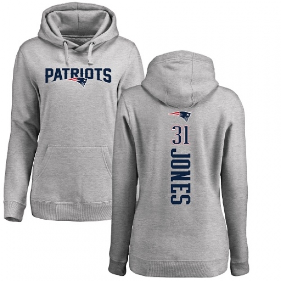 >NFL Women's Nike New England Patriots #31 Jonathan Jones Ash Backer Pullover Hoodie