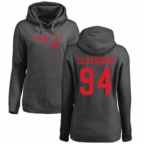 >NFL Women's Nike New England Patriots #94 Adrian Clayborn Ash One Color Pullover Hoodie