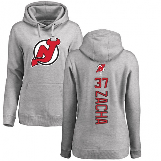 >NHL Women's Adidas New Jersey Devils #37 Pavel Zacha Ash Backer Pullover Hoodie