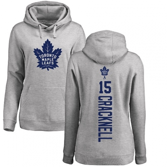 >NHL Women's Adidas Toronto Maple Leafs #15 Adam Cracknell Ash Backer Pullover Hoodie