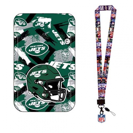 New York Jets ID Stickers Badge Holder with Lanyard, Hard Plastic Key Card Work Badge Sleeve for Office, School, Factory, ID Credit Cards, s