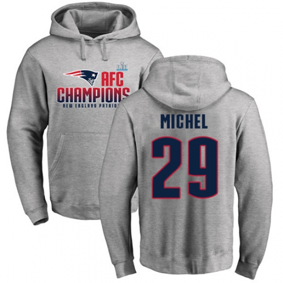 Nike New England Patriots #29 Sony Michel Heather Gray 2017 AFC Champions Pullover Hoodie