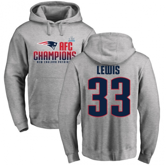 >Nike New England Patriots #33 Dion Lewis Heather Gray 2017 AFC Champions Pullover Hoodie