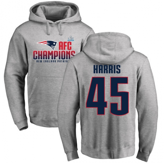 >Nike New England Patriots #45 David Harris Heather Gray 2017 AFC Champions Pullover Hoodie