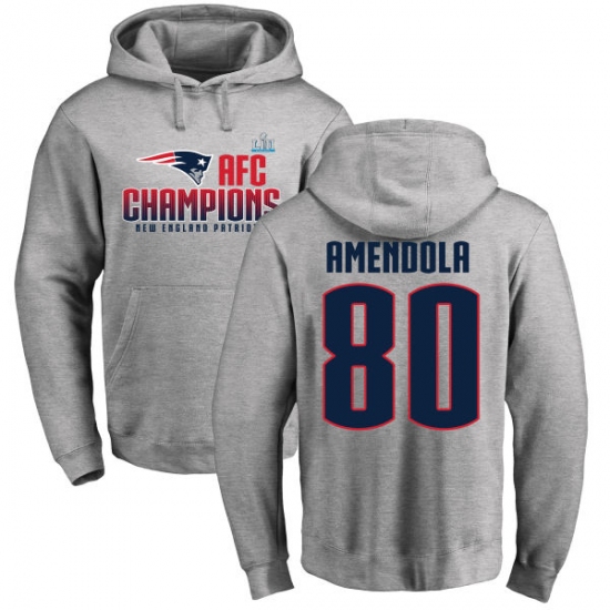 >Nike New England Patriots #80 Danny Amendola Heather Gray 2017 AFC Champions Pullover Hoodie