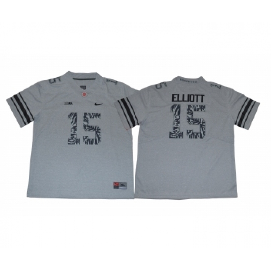 >Ohio State Buckeyes 15 Ezekiel Elliott Gray Shadow College Football Jersey