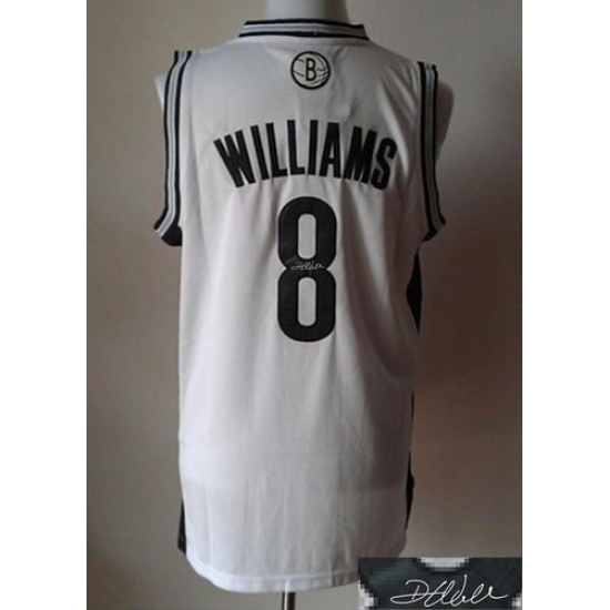 >Revolution 30 Autographed Nets #8 Deron Williams White Stitched NBA Jersey