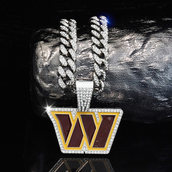 Silver 20inch Commander Washington Team head NFL pendant Europe and the United States new fashion personality football necklace men and women street hip-ho