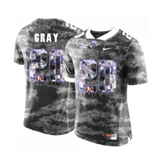 >TCU Horned Frogs 20 Deante Gray Gray With Portrait Print College Football Limited Jersey