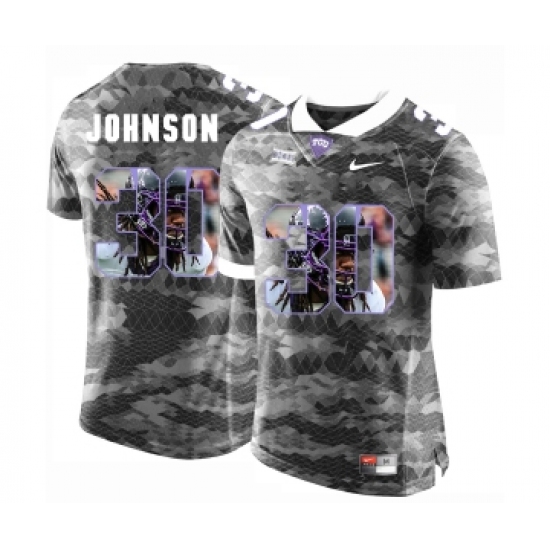 >TCU Horned Frogs 30 Denzel Johnson Gray With Portrait Print College Football Limited Jersey