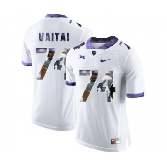 >TCU Horned Frogs 74 Halapoulivaati Vaitai White With Portrait Print College Football Limited Jersey