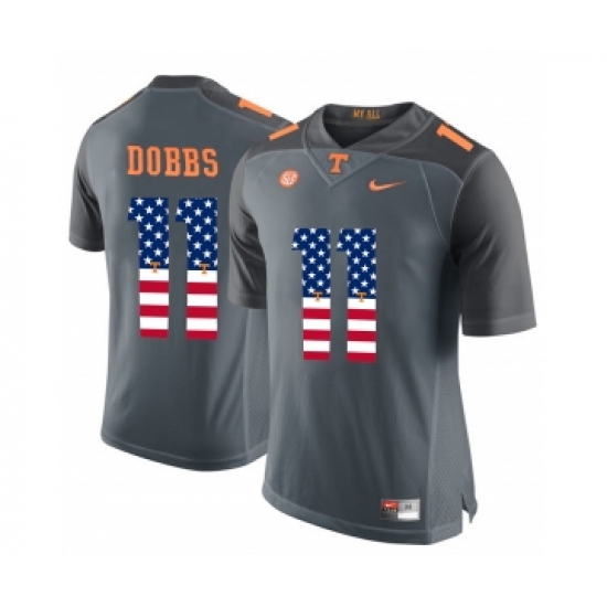 >Tennessee Volunteers 11 Joshua Dobbs Gray USA Flag College Football Jersey