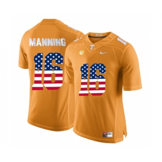 Tennessee Volunteers 16 Peyton Manning Orange USA Flag College Football Jersey