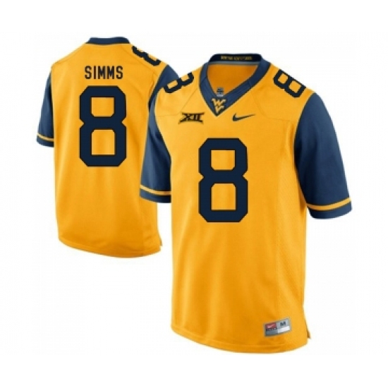 West Virginia Mountaineers 8 Marcus Simms Gold College Football Jersey
