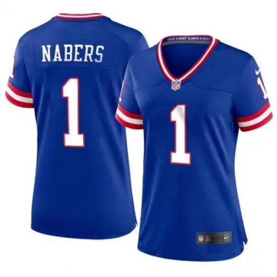 Women New York Giants #1 Malik Nabers Royal 2024 F U S E Throwback Limited Stitched Jersey