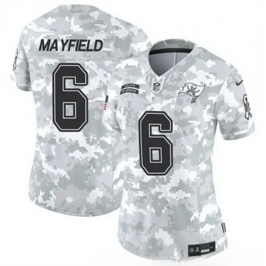 >Women Tampa Bay Buccaneers #6 Baker Mayfield 2024 F U S E Arctic Camo Salute To Service Limited Stitched Football Jersey