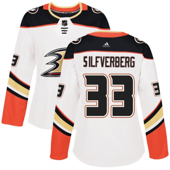 >Women's Adidas Anaheim Ducks #33 Jakob Silfverberg Authentic White Away NHL Jersey