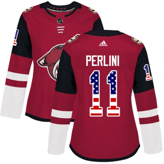 Home>NHL>Arizona Coyotes>Brendan Perlini>Women's Adidas Arizona Coyotes #11 Brendan Perlini Authentic Red USA Flag Fashion NHL Jersey