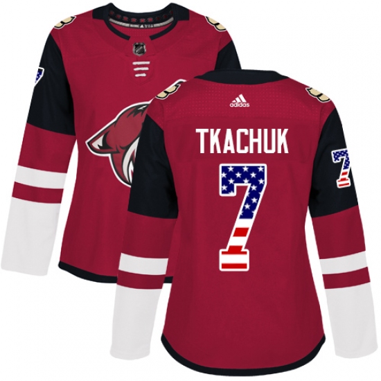 Home>NHL>Arizona Coyotes>Keith Tkachuk>Women's Adidas Arizona Coyotes #7 Keith Tkachuk Authentic Red USA Flag Fashion NHL Jersey