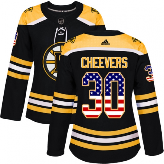 Home>NHL>Boston Bruins>Gerry Cheevers>Women's Adidas Boston Bruins #30 Gerry Cheevers Authentic Black USA Flag Fashion NHL Jersey