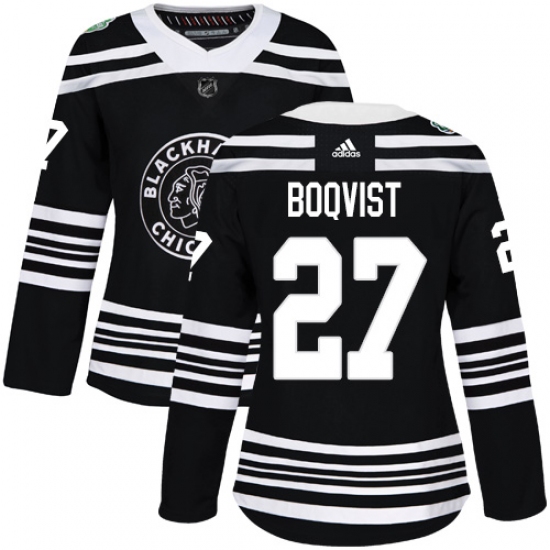 >Women's Adidas Chicago Blackhawks #27 Adam Boqvist Authentic Black 2019 Winter Classic NHL Jersey