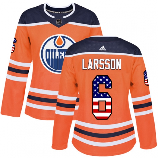 Home>NHL>Edmonton Oilers>Adam Larsson>Women's Adidas Edmonton Oilers #6 Adam Larsson Authentic Orange USA Flag Fashion NHL Jersey