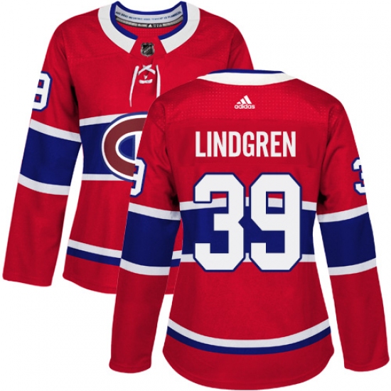 Home>NHL>Montreal Canadiens>Charlie Lindgren>Women's Adidas Montreal Canadiens #39 Charlie Lindgren Premier Red Home NHL Jersey