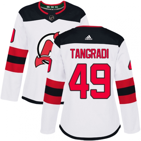 Women's Adidas New Jersey Devils #49 Eric Tangradi Authentic White Away NHL Jersey