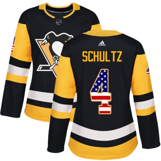 Women's Adidas Pittsburgh Penguins #4 Justin Schultz Authentic Black USA Flag Fashion NHL Jersey