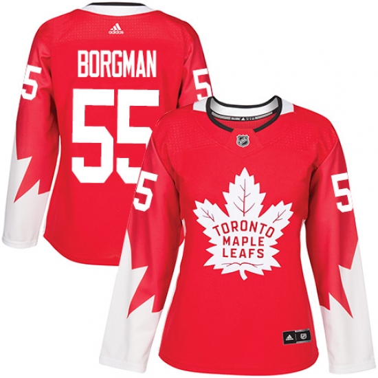Women's Adidas Toronto Maple Leafs #55 Andreas Borgman Authentic Red Alternate NHL Jersey