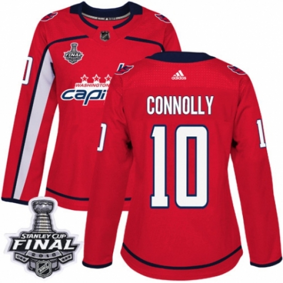 >Women's Adidas Washington Capitals #10 Brett Connolly Authentic Red Home 2018 Stanley Cup Final NHL Jersey