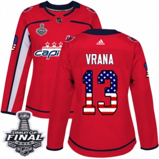 Women's Adidas Washington Capitals #13 Jakub Vrana Authentic Red USA Flag Fashion 2018 Stanley Cup Final NHL Jersey