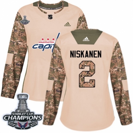 Women's Adidas Washington Capitals #2 Matt Niskanen Authentic Camo Veterans Day Practice 2018 Stanley Cup Final Champions NHL Jersey