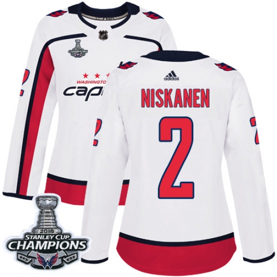 Women's Adidas Washington Capitals #2 Matt Niskanen Authentic White Away 2018 Stanley Cup Final Champions NHL Jersey