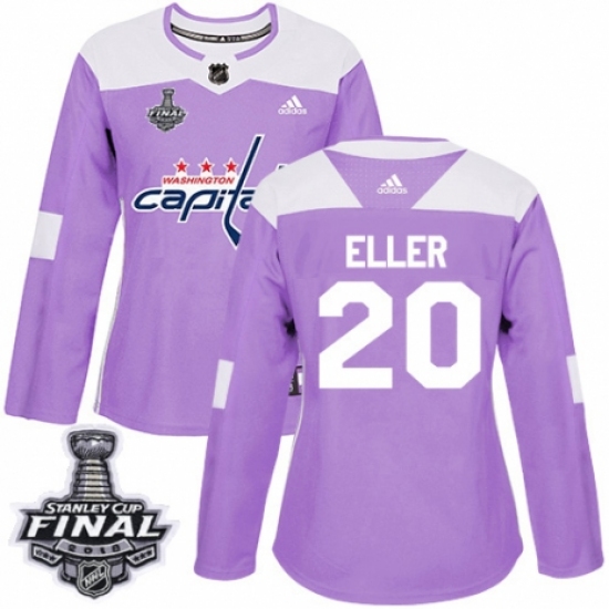 Women's Adidas Washington Capitals #20 Lars Eller Authentic Purple Fights Cancer Practice 2018 Stanley Cup Final NHL Jersey