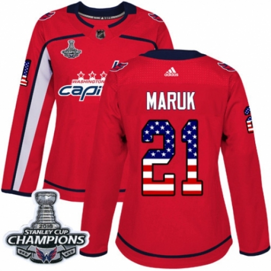 Women's Adidas Washington Capitals #21 Dennis Maruk Authentic Red USA Flag Fashion 2018 Stanley Cup Final Champions NHL Jersey