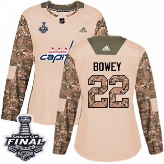 Women's Adidas Washington Capitals #22 Madison Bowey Authentic Camo Veterans Day Practice 2018 Stanley Cup Final NHL Jersey