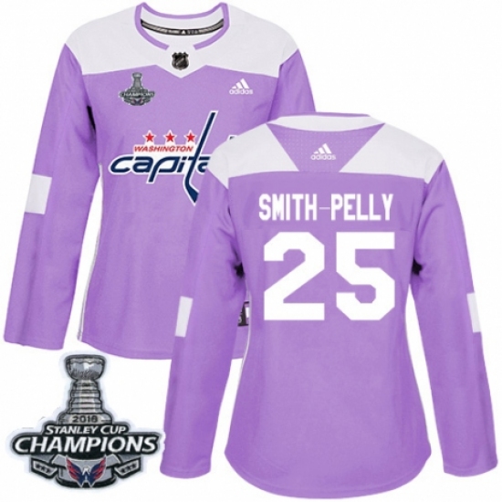 Women's Adidas Washington Capitals #25 Devante Smith-Pelly Authentic Purple Fights Cancer Practice 2018 Stanley Cup Final Champions NHL Jersey