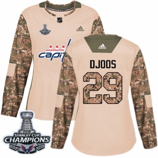 Women's Adidas Washington Capitals #29 Christian Djoos Authentic Camo Veterans Day Practice 2018 Stanley Cup Final Champions NHL Jersey