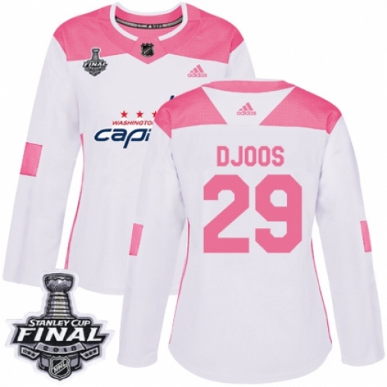 Women's Adidas Washington Capitals #29 Christian Djoos Authentic White/Pink Fashion 2018 Stanley Cup Final NHL Jersey