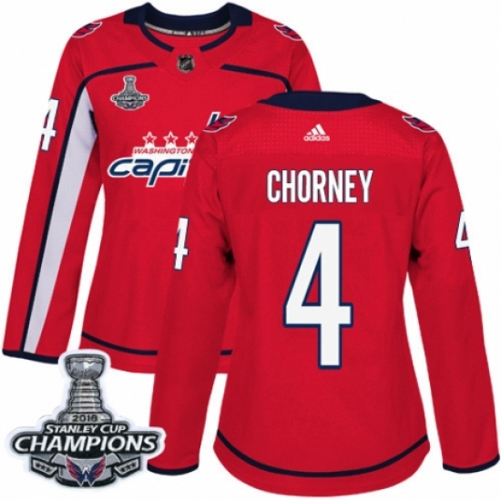 Women's Adidas Washington Capitals #4 Taylor Chorney Authentic Red Home 2018 Stanley Cup Final Champions NHL Jersey