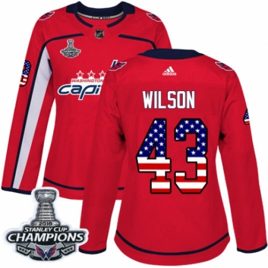 Women's Adidas Washington Capitals #43 Tom Wilson Authentic Red USA Flag Fashion 2018 Stanley Cup Final Champions NHL Jersey