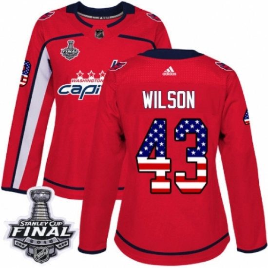Women's Adidas Washington Capitals #43 Tom Wilson Authentic Red USA Flag Fashion 2018 Stanley Cup Final NHL Jersey
