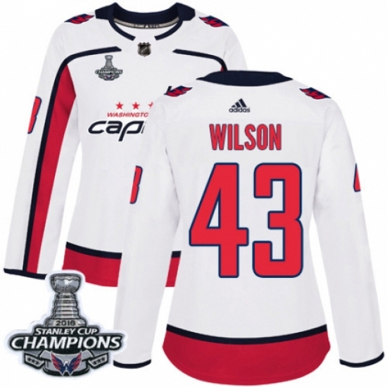 Women's Adidas Washington Capitals #43 Tom Wilson Authentic White Away 2018 Stanley Cup Final Champions NHL Jersey
