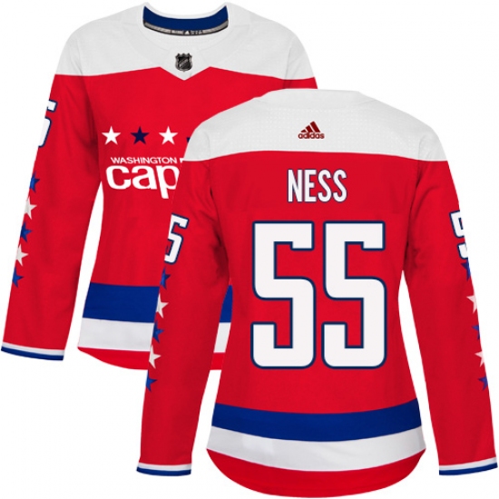 >Women's Adidas Washington Capitals #55 Aaron Ness Premier Red Alternate NHL Jersey